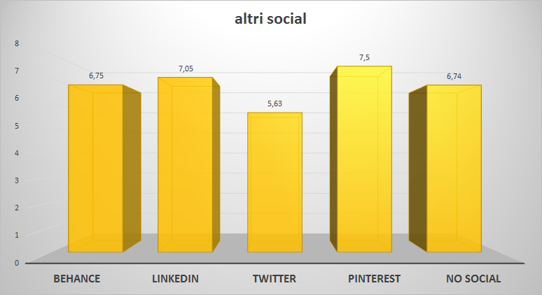Attenzione: solo per questo grafico, i valori numerici non sono riferiti all'indice di soddisfazione (indice di TAU, da 2 a 12), ma alla media del valore numerico attribuito a ciascun social, secondo questa scala: