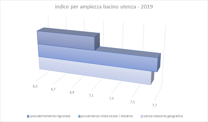 La prima barra (blu ) corrisponde all'indice di soddisfazione medio rilevato in chi lavora prevalentemente sul bacino locale.