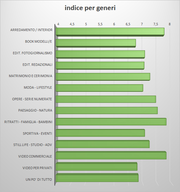 Detto questo, va segnalato che si confermano essere settori a buon livello di soddisfazione la fotografia di arredamento ed interior, i ritratti di famiglia e bambini, il video commerciale.