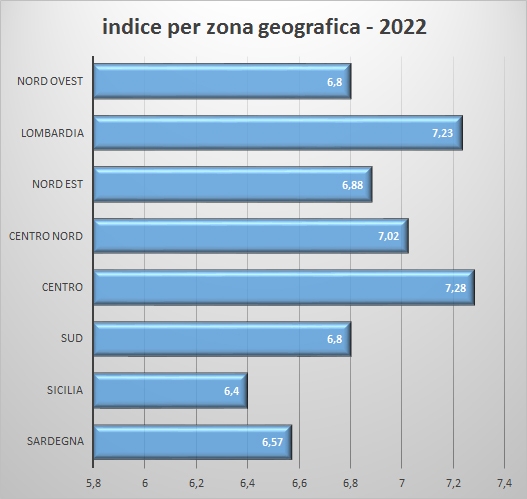 Sono quindi SOTTO la media le macro-zone con indici inferiori a 7,03: