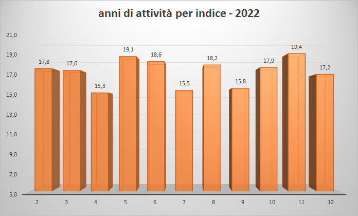 Addirittura - e senza che siano più rilevabili delle vere tendenze - l'anzianità di esercizio corrispondente agli estremi del rilevamento sono sostanzialmente paragonabili (mediamente 17,8 anni di anzianità nel gruppo del livello 2 - mediamente 17,2 anni di anzianità per il gruppo di livello 12).