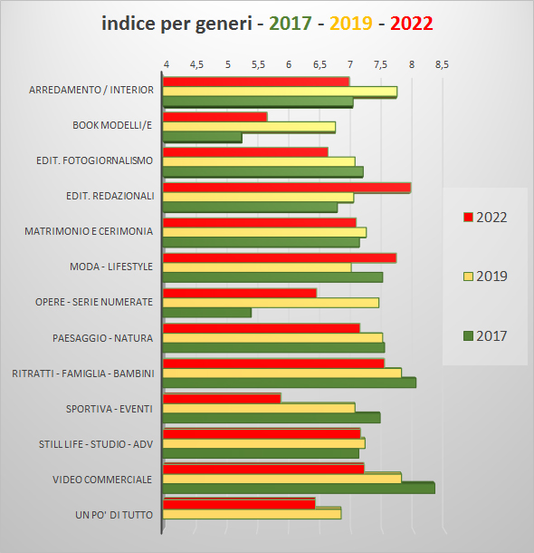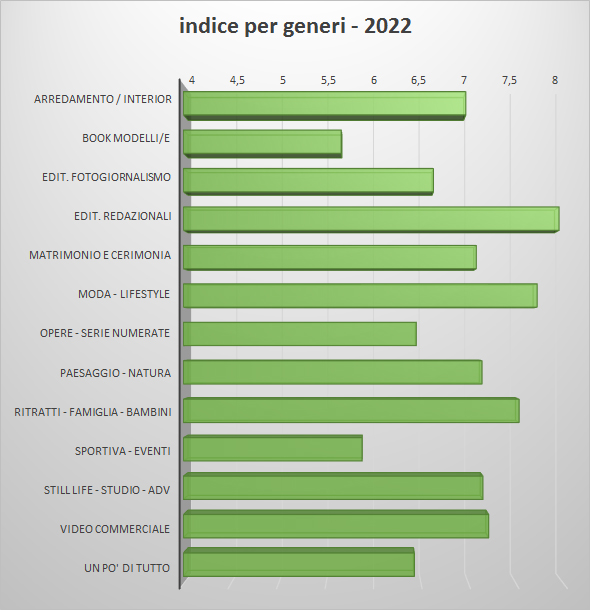 Detto questo, va segnalato che nell'ultimo periodo hanno registrato scarsi indici di soddisfazione la fotografia per book di modelli/e e (ovviamente) la fotografia sportiva e di eventi.