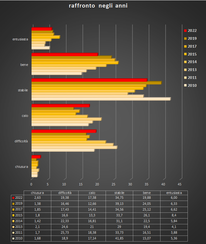 Ecco un raffronto dell'indice di soddisfazione nella sua evoluzione nel corso degli ultimi anni