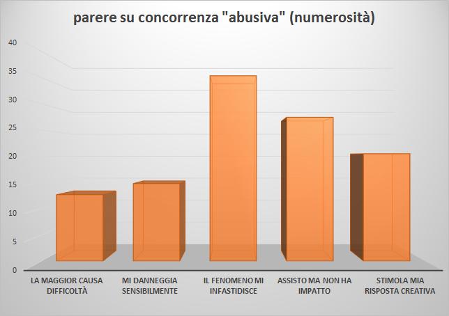La domanda era: "la modifica del tessuto produttivo ha aumentato impatto ed evidenza di molti fenomeni di concorrenza sleale (cosiddetti "abusivi"); segna l'affermazione che ritieni piu' corretta - al massimo due risposte"