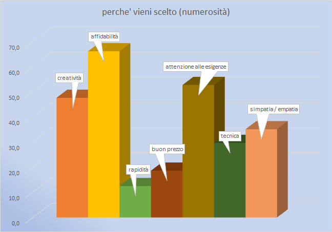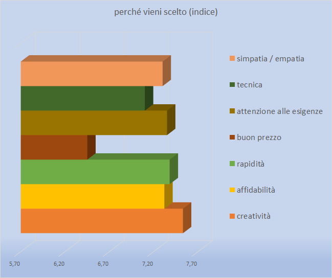 "Per quanto hai modo di valutare tu, quando un cliente decide di affidarti il lavoro, quali sono le tue caratteristiche che lo portano a scegliere proprio te?